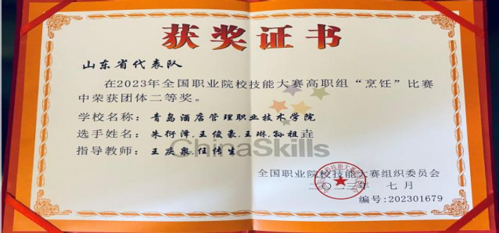 7月27日至30日,2023年全国职业院校技能大赛(高职组)烹饪赛项在广东顺德职业技术公司举行,太阳成集团122ccvip员工朱衍泽、王琳、王俊豪、孙祖垚组成的参赛团队凭借宴席作品《乡土情怀·陌上花开》荣获二等奖。