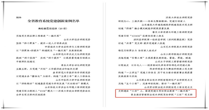 近日,省教育厅公布了全省教育系统党建创新案例遴选结果,公司党总支“工坊”党支部报送的案例《支部建在“工坊”上,推进党建与烹饪职业教育“一融双高”》入选。