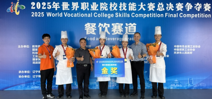 9月8日至12日,2025年世界职业院校技能大赛争夺赛餐饮赛道高职组比赛在辽宁现代服务职业技术公司举行,公司太阳成集团122ccvip员工张璐、张佳宁、杨心茹、黄旭组成的参赛团队荣获金奖,刘俊新、王庆泉老师荣获“优秀指导教师”。